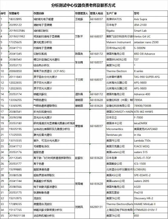 仪器负责老师及联系方式: